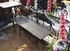 Установка гранитных лавочки и столика,