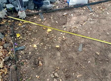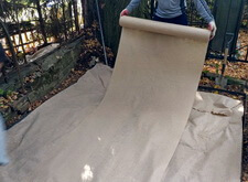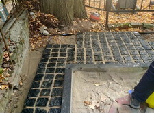 Первый этап работы – очистка и подготовка места захоронения к дальнейшим работам. Мы вынесли памятник, срезали старое ограждение, очистили землю от травы и иного мусора. Далее разметили площадь участка и укрыли её геотекстилем.