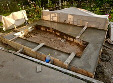 После сборки каркаса монтируем опалубку и заливаем её бетоном.
