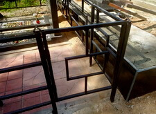 Создаём ограждение. Монтируем заранее вырезанные балясины, на них сверху приклеиваем гранитные балки. Получившееся ограждения имеет вид перил.