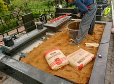Далее устанавливаем подставки под памятники, заливаем их бетоном и ещё раз кладём подложку.