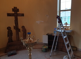 В день монтажа мы доставили готовые таблички в храм, предварительно сняв со стены висевшую там мраморную доску.